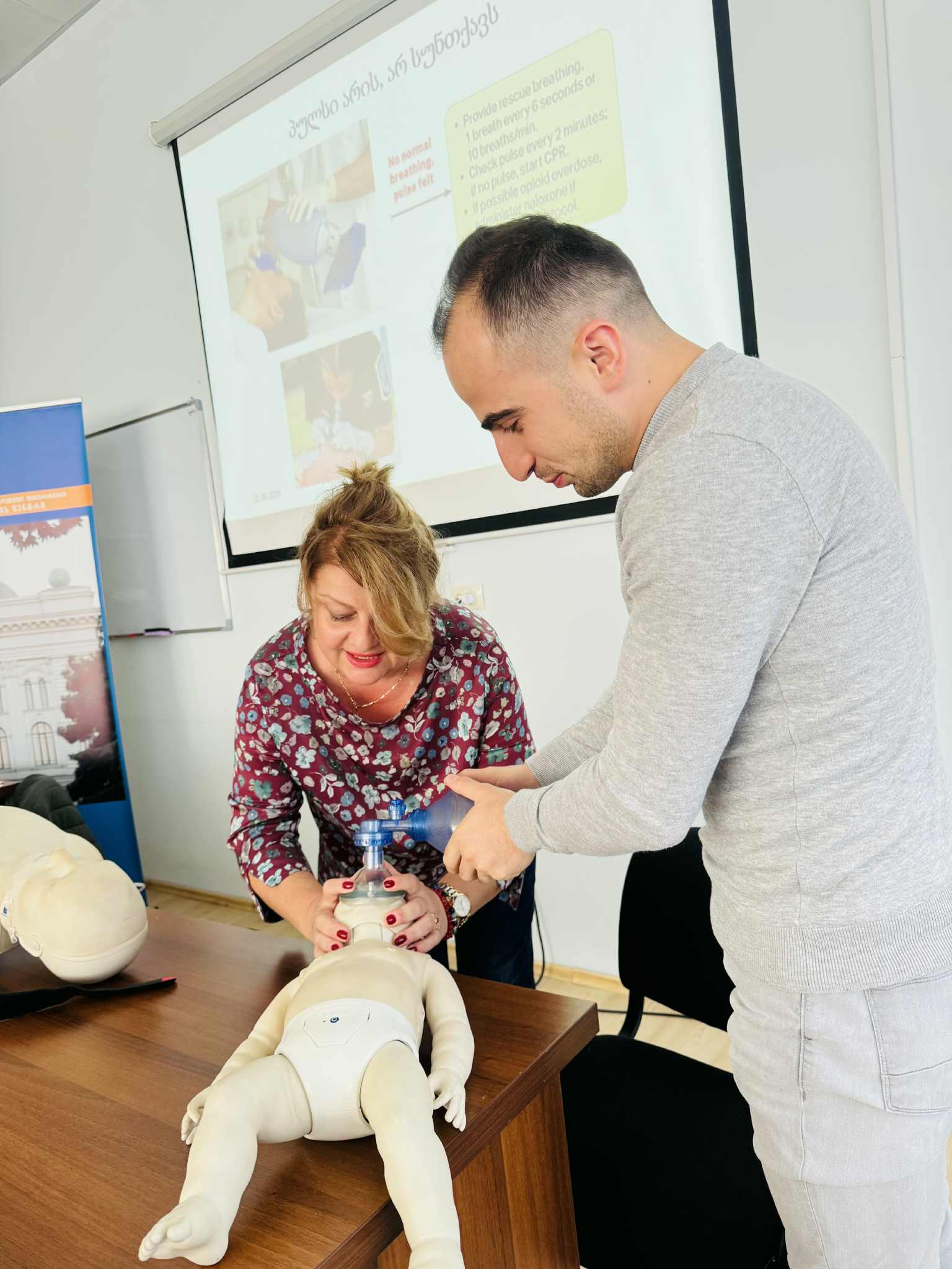 თსუ პროფერსიული განათლების ცენტრის ადმინისტრაციის წარმომადგენლები, პროგრამის ხელმძღვანელები, მასწავლებლები და სტუდენტები გაეცნენნ თუ რას წარმოადგენს პირველადი გადაუდებელი დახმარება, როგორ ხდება პირველადი დახმარების აღმოჩენა ტრავმის, სისხლდენის, ინტოქსიკაციის, გულისწასვლის, მოხრჩობის დროს. ასევე გულ-ფილტვის რეანიმაციას მოზრდილებსა და ბავშვებში.